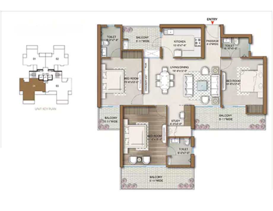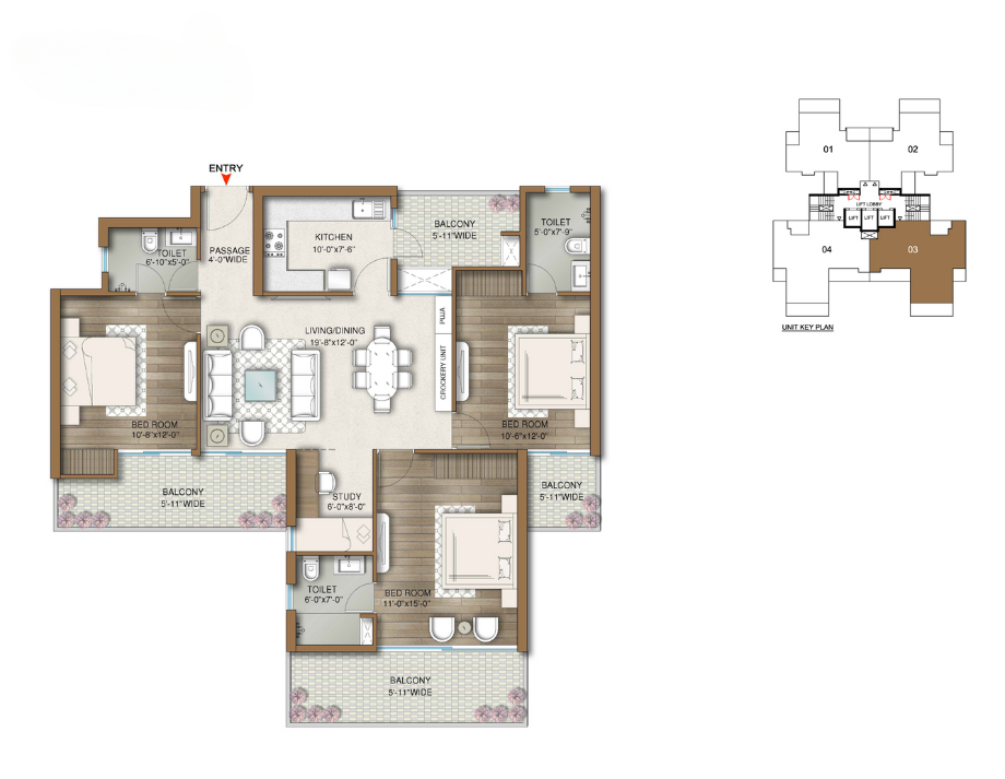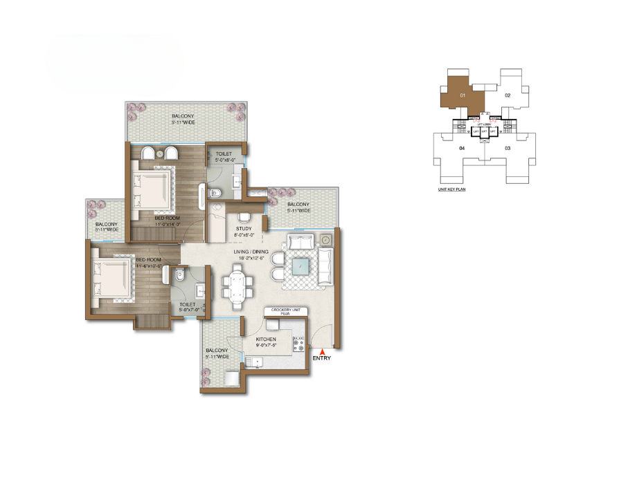 3.5 BHK + S, 1805 Sqft.